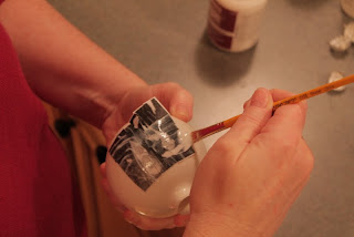I brushed a spot the size of the photo on the inside of the ornament.