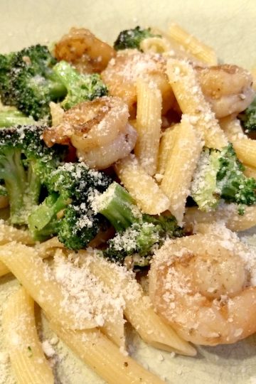 PARMESAN SHRIMP AND BROCCOLI WITH PENNE PASTA