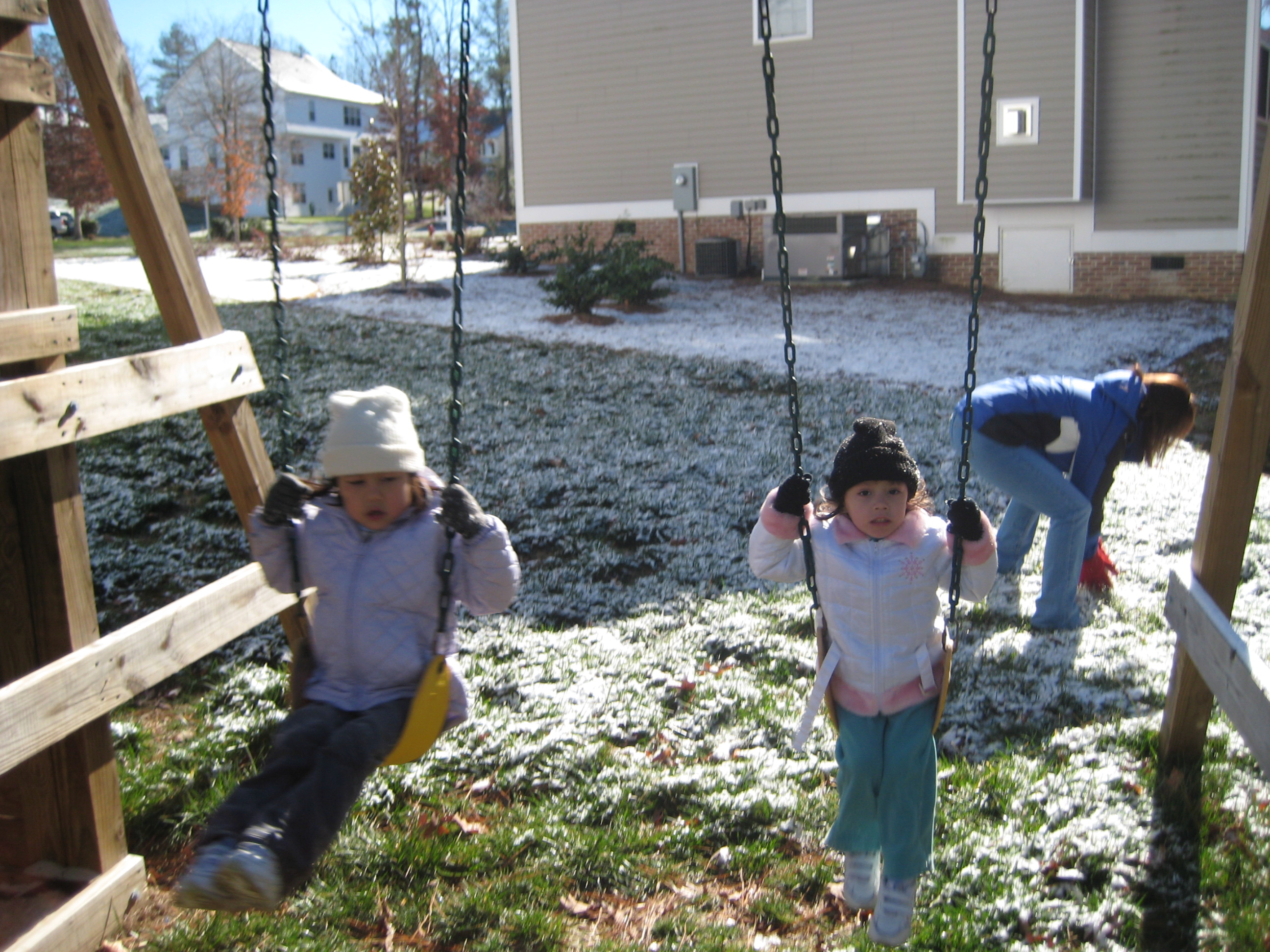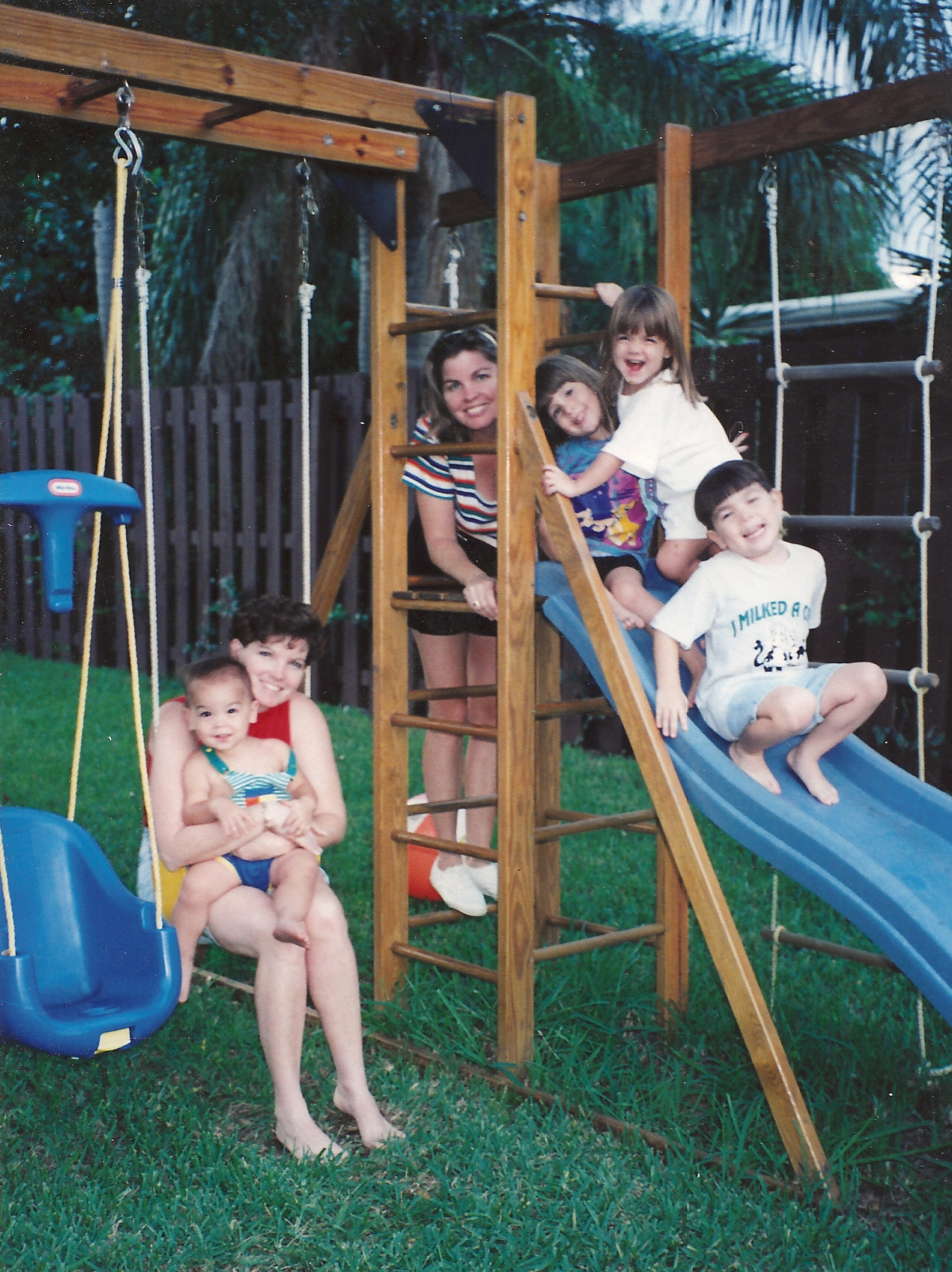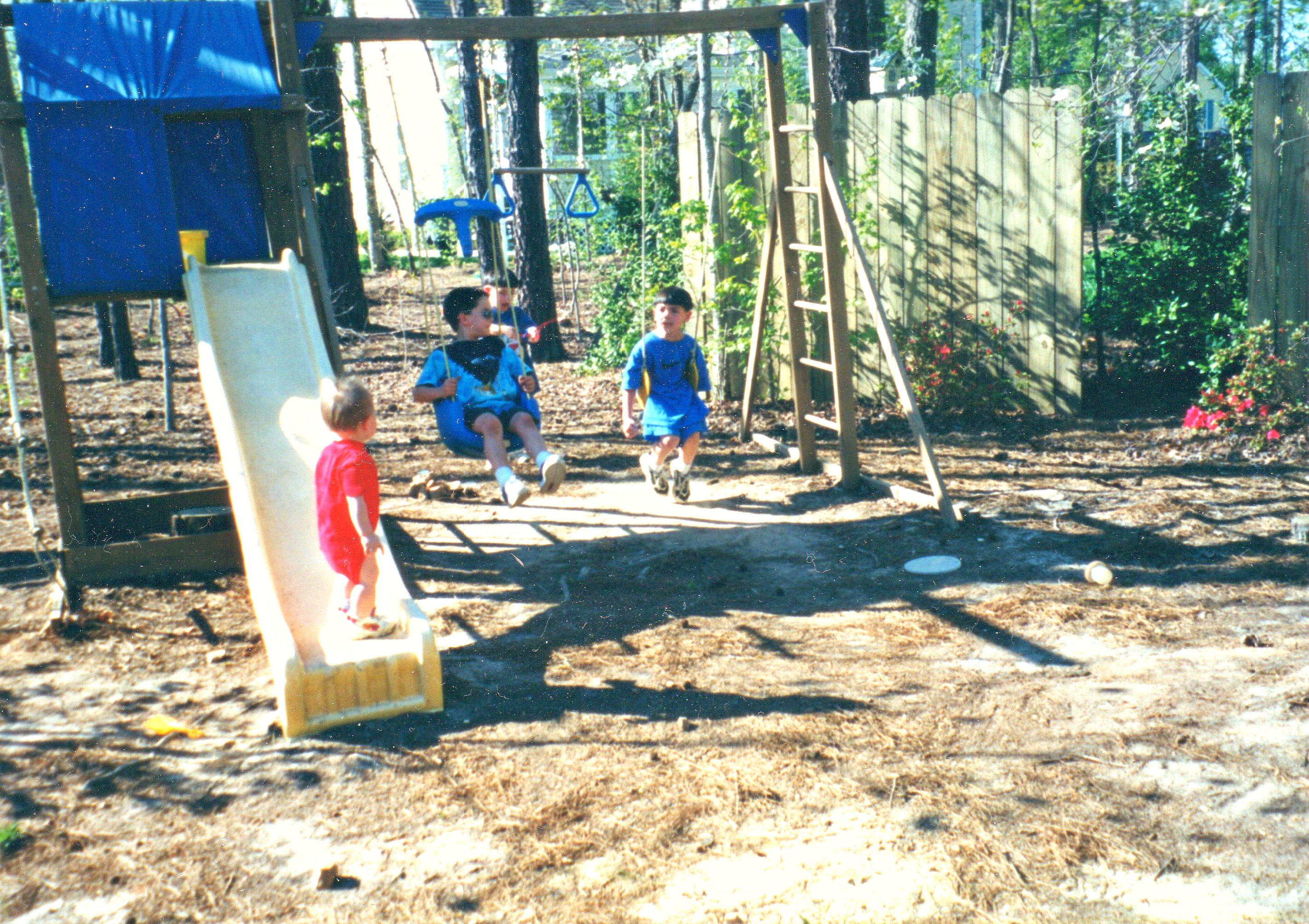 That’s Son #2 on the right swing, Son #4 standing on the slide and a neighbor friend is swinging on the baby swing.