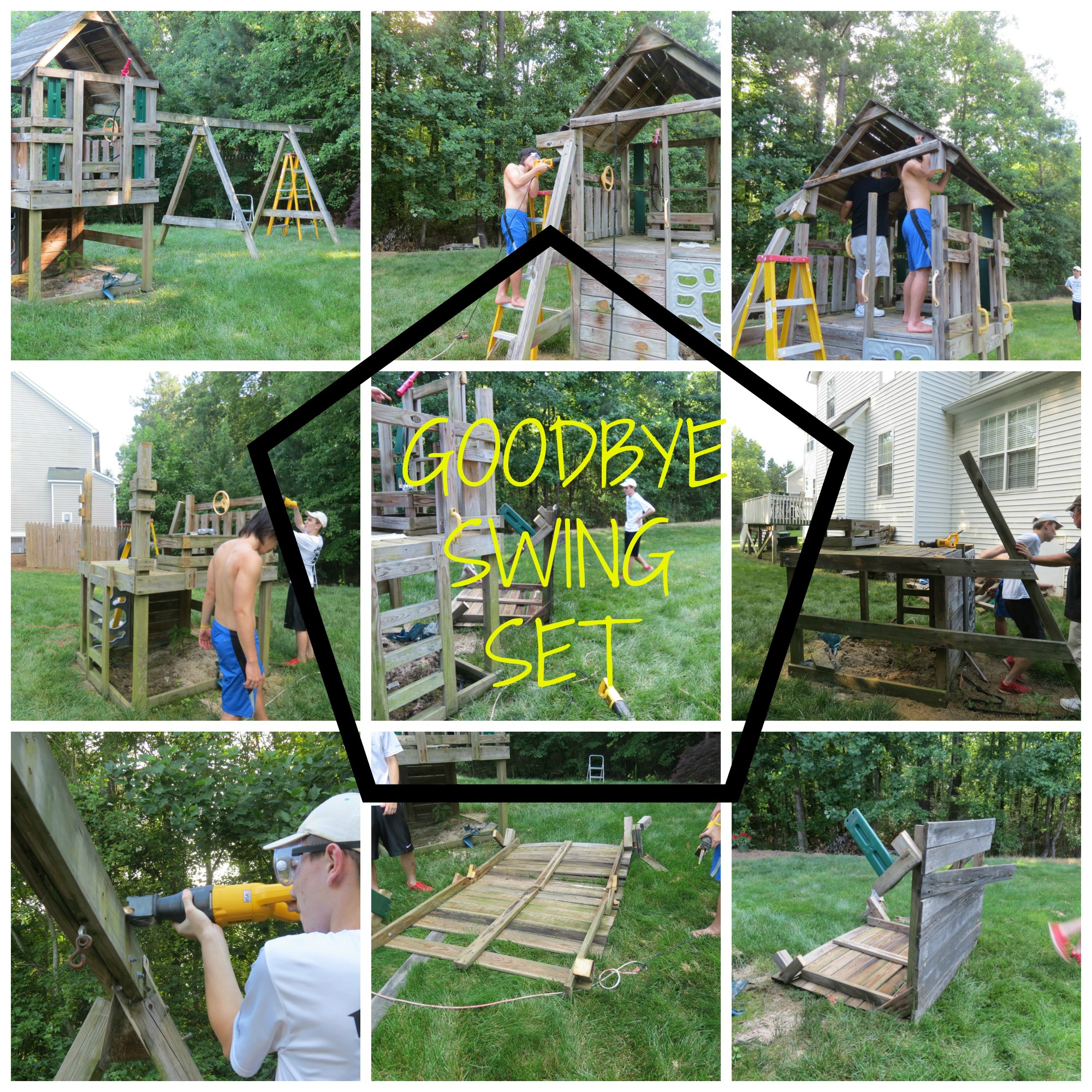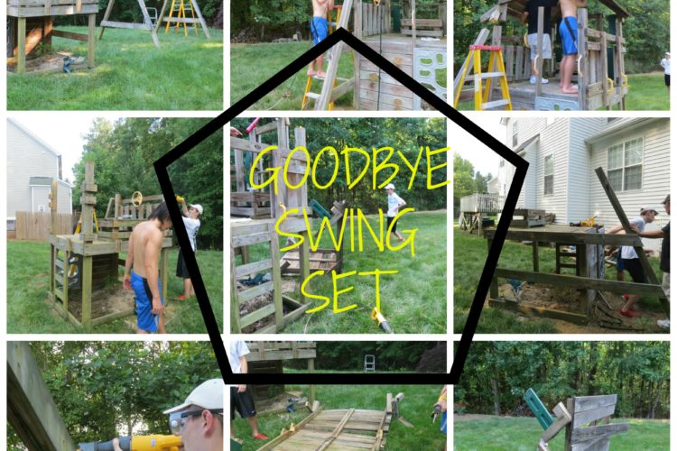 Well, this weekend, we said goodbye to one of the big things….THE SWING SET. We’ve had a swing set(not the same one mind you) at every house we’ve owned for as long as we have had children.