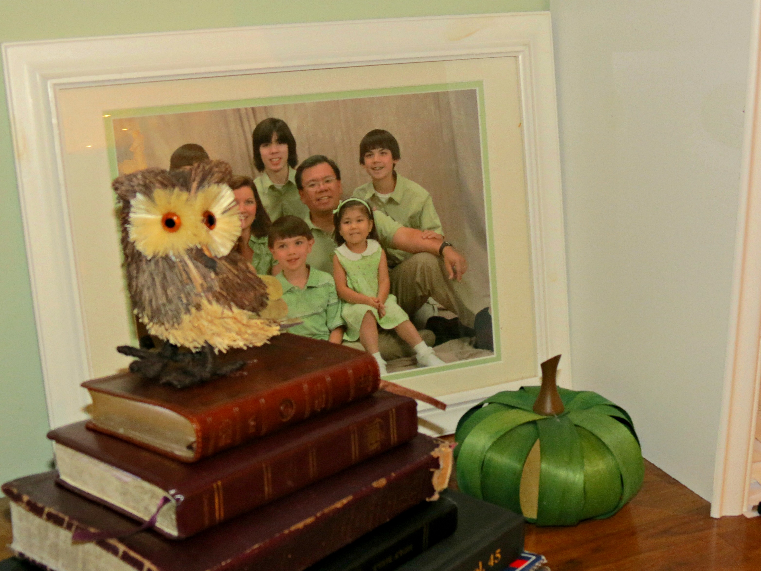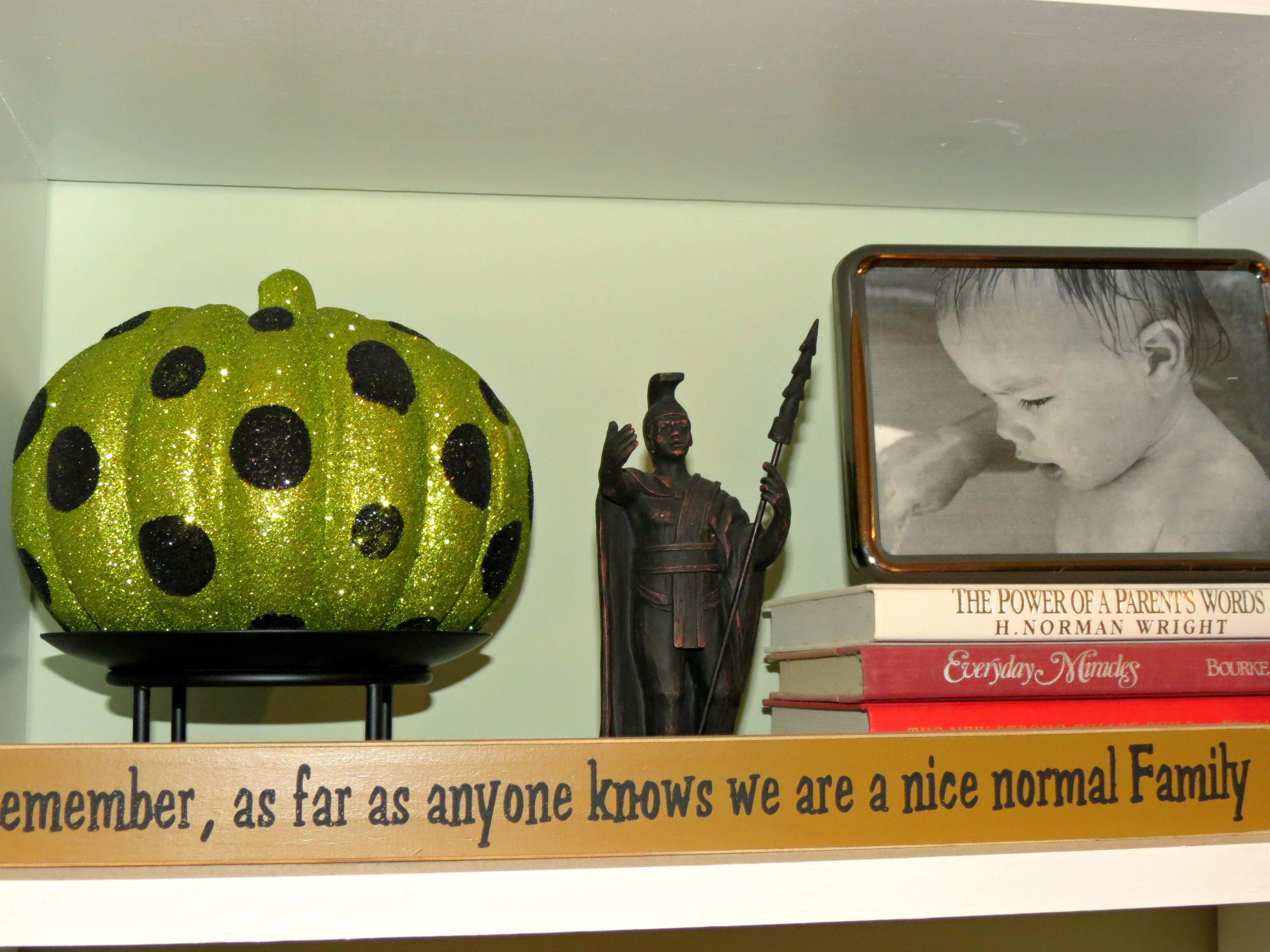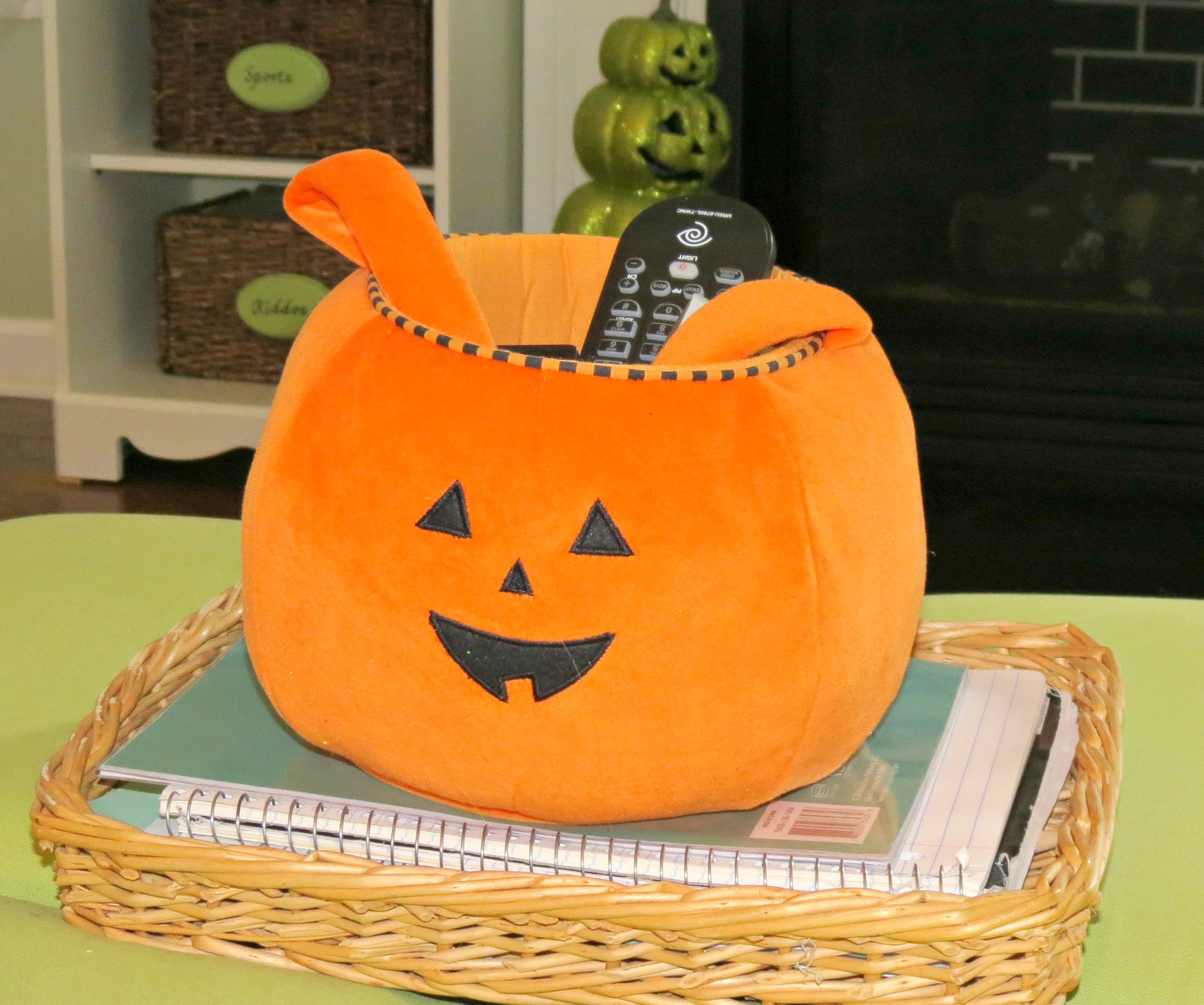This cute pumpkin hides the remotes (all two thousand of them!!).