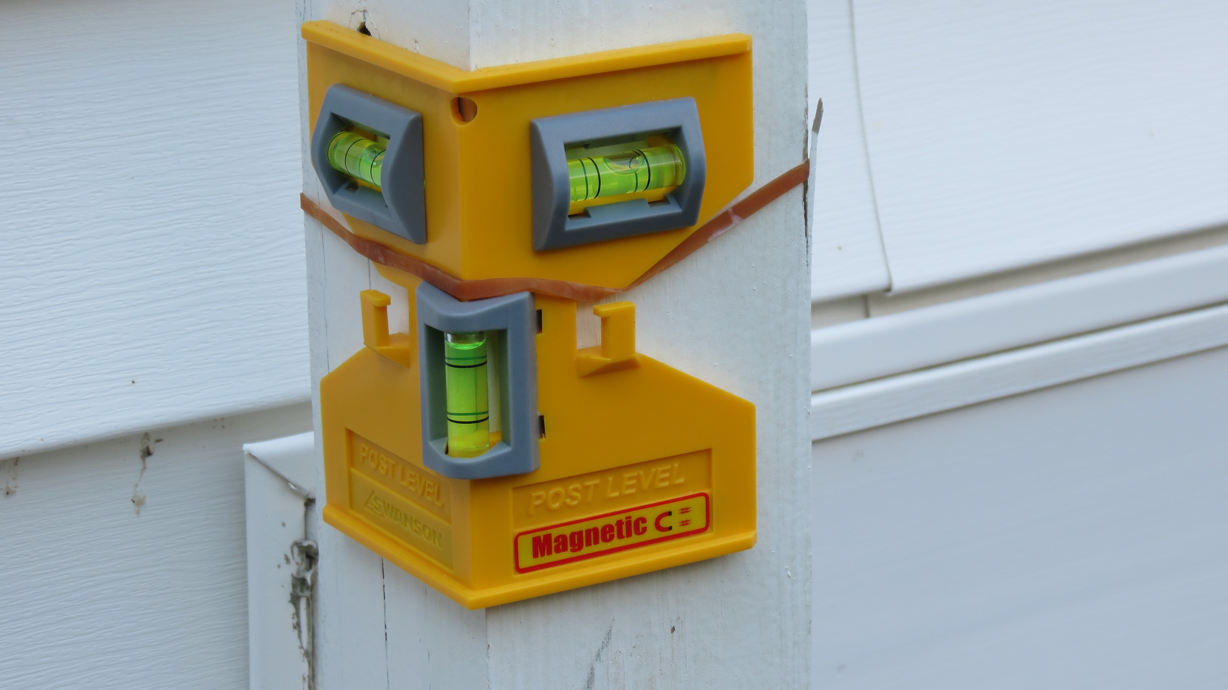 The helpful Lowe’s Home Improvement salesperson told us about a cool instrument, a PostLevel, to help level the posts before cementing them into the ground. It was a lifesaver!!