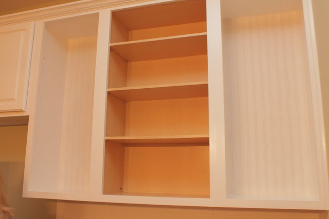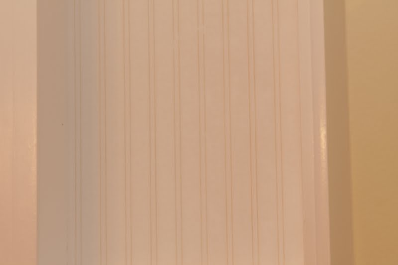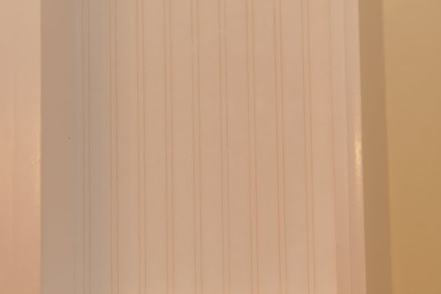I wallpapered the back of the open shelves with beadboard paper.