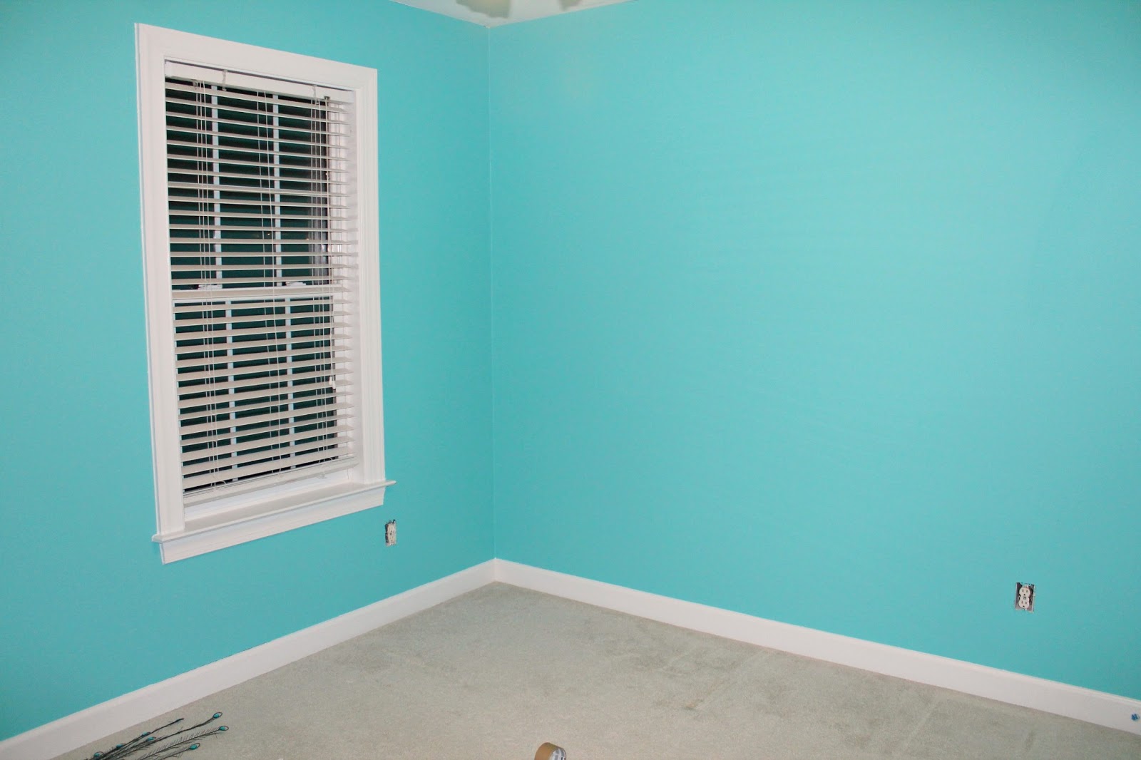 Today I finished painting Daughter #2’s teal peacock room. While I was painting the walls, I decided to paint the trim, too. Doesn’t it look simply marvelous??!!