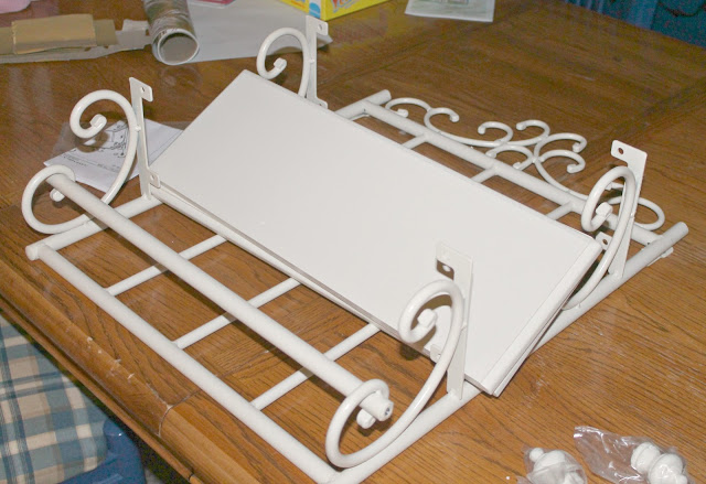 It came in cream so I spray painted it white and hung it above the toilet.