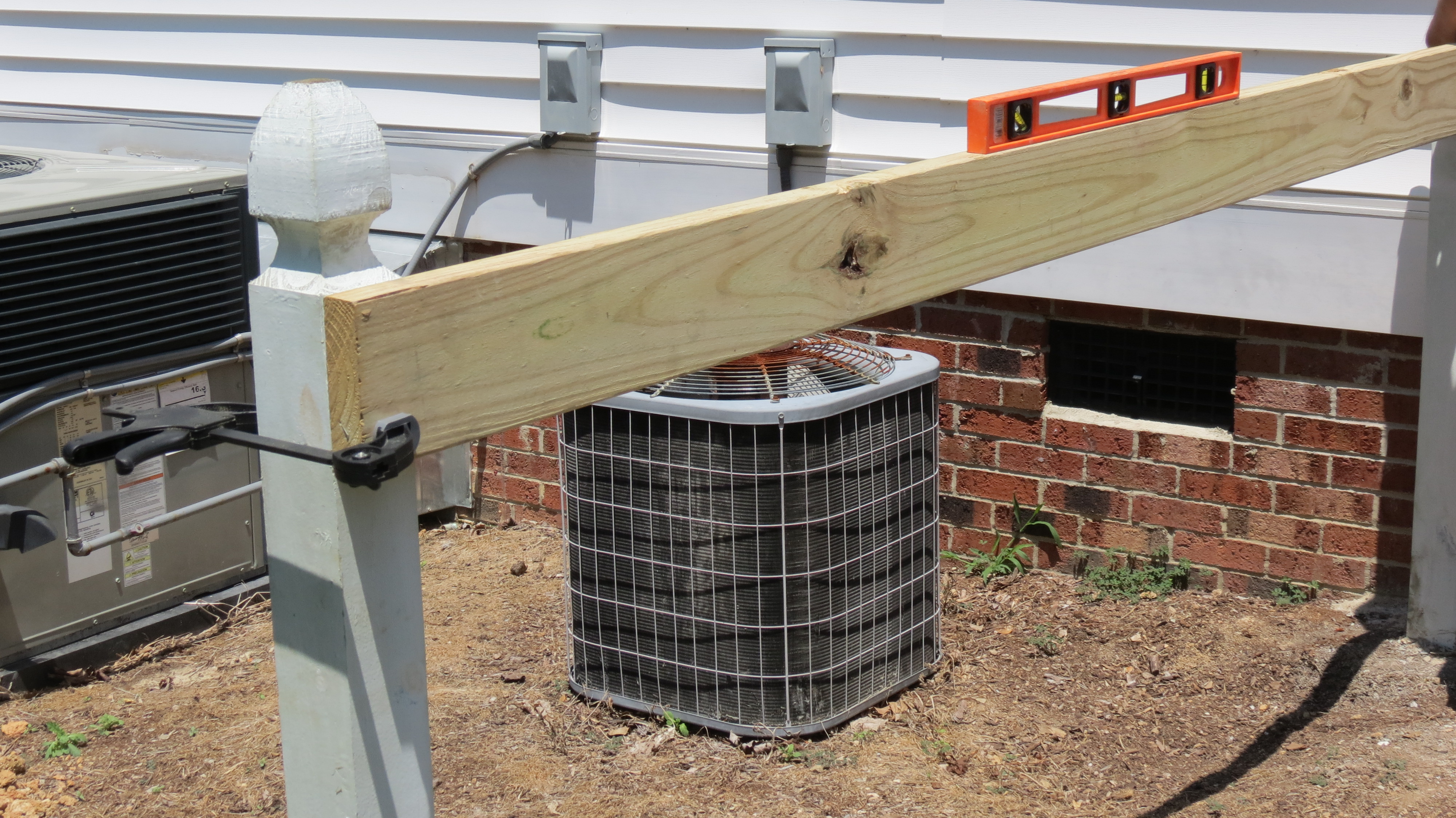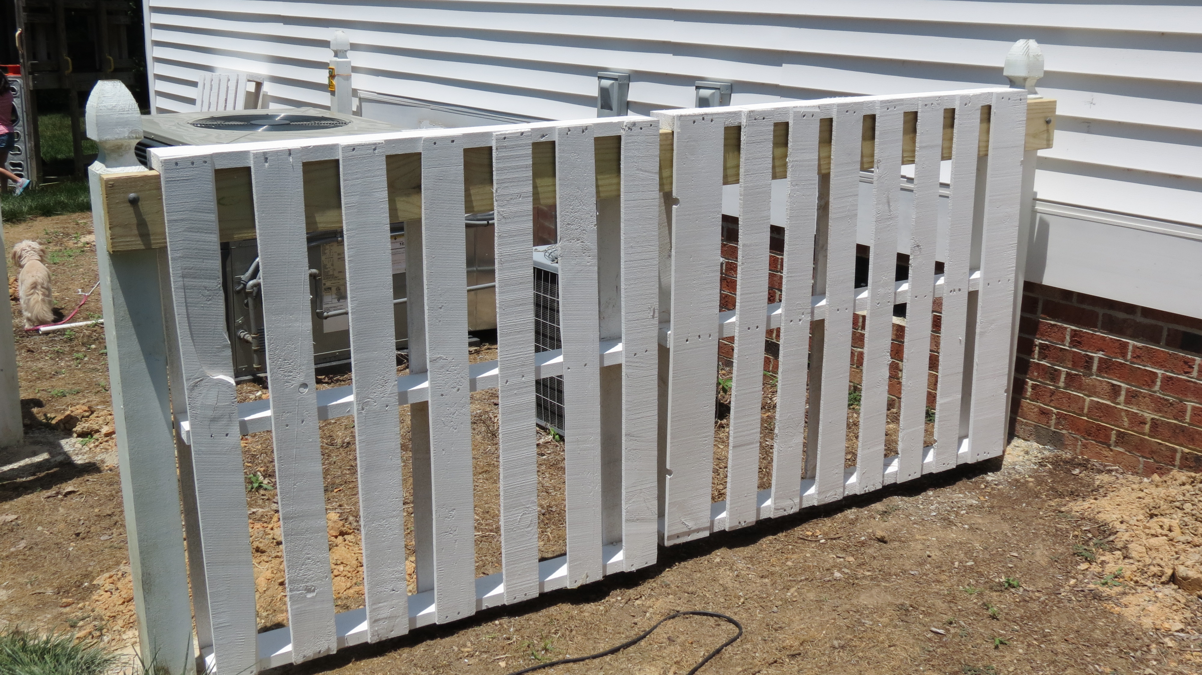 If we need to get to the air conditioning unit for repairs, we can unscrew the bolts and lift a portion of the fencing off the posts.