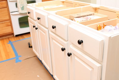 3.  Removed hardware off of drawers and doors