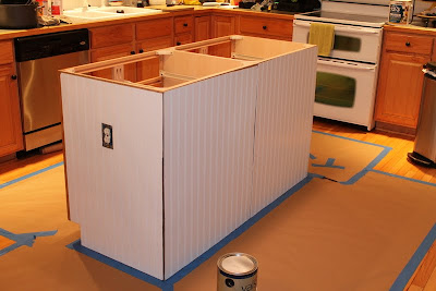 7.  Glued and nailed beadboard paneling onto three sides