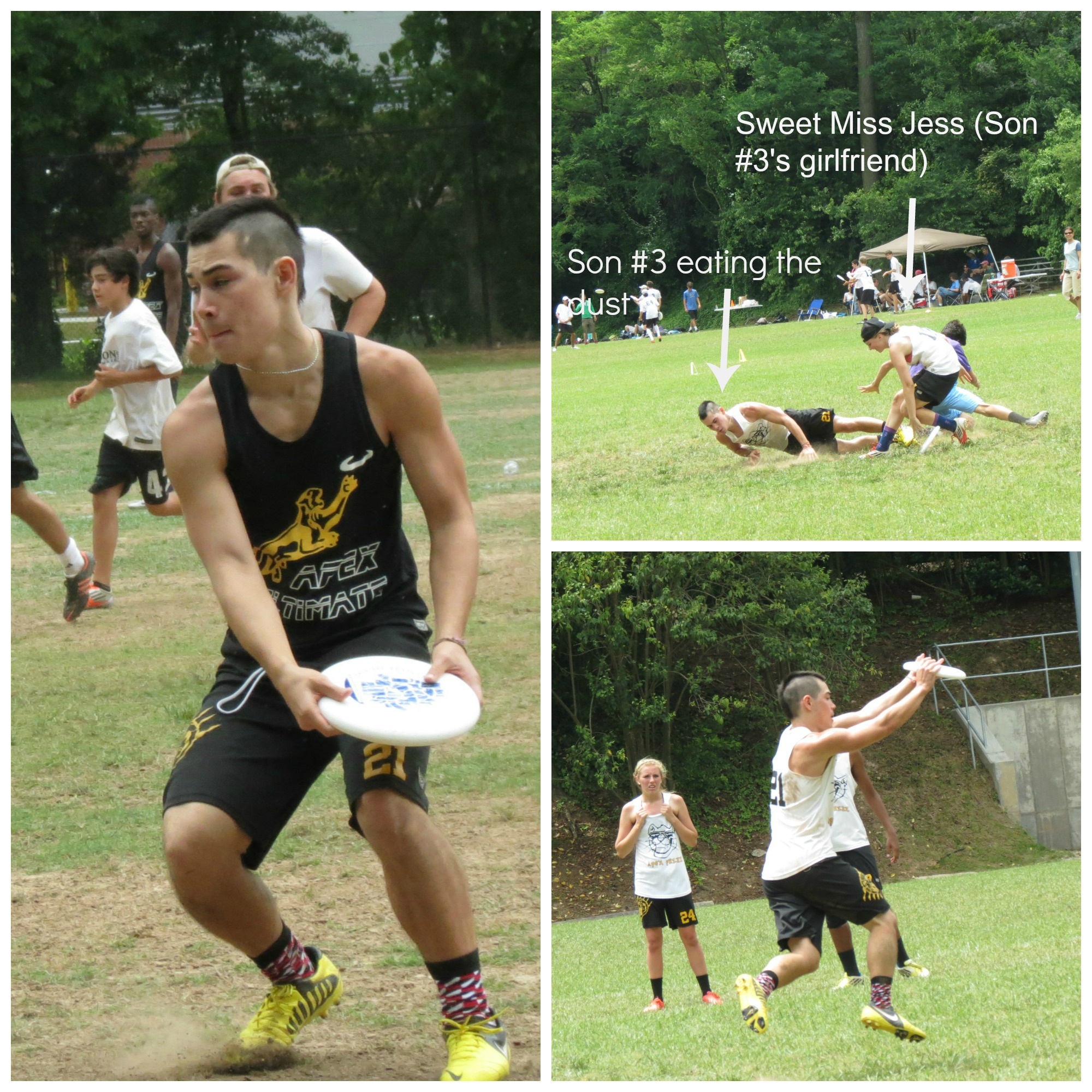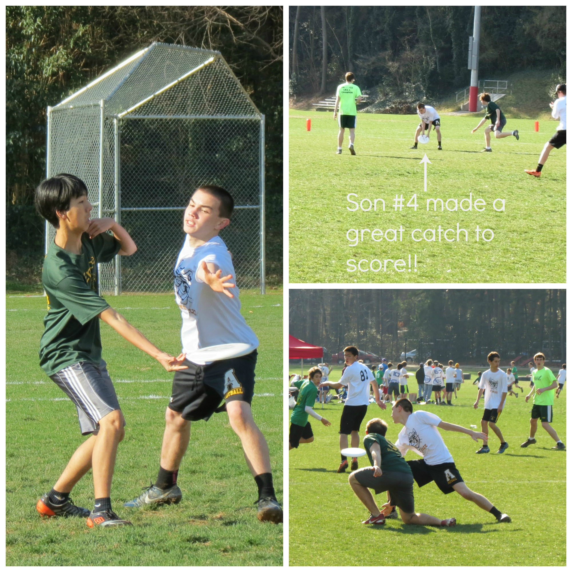 This past weekend, the family got to watch the boys play at an Ultimate Frisbee Tournament which consisted of two days of four games each day. Each game lasted about an hour and a half. Imagine how much running that occurs in two straight days. I was exhausted and I was just sitting in my chair cheering my heart out.